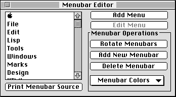 The Interface Toolkit also lets you create and edit menubars, menus, and menu items. You begin with the menubar editor.